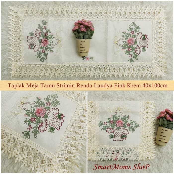 TAPLAK MEJA TAMU BORDIR IMPORT / TAPLAK BORDIR / TAPLAK SHABBY /ROSE VERANIA SOFTPINK KREM | Shopee Indonesia