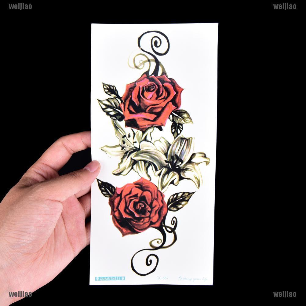 1 Lembar Merah Mekar Mawar Bunga Seni Tato Tahan Air Stiker Tato Sementara Flash Palsu Henna|Sementara Tato| - AliExpress