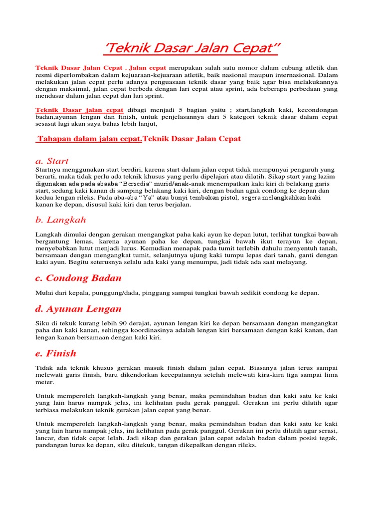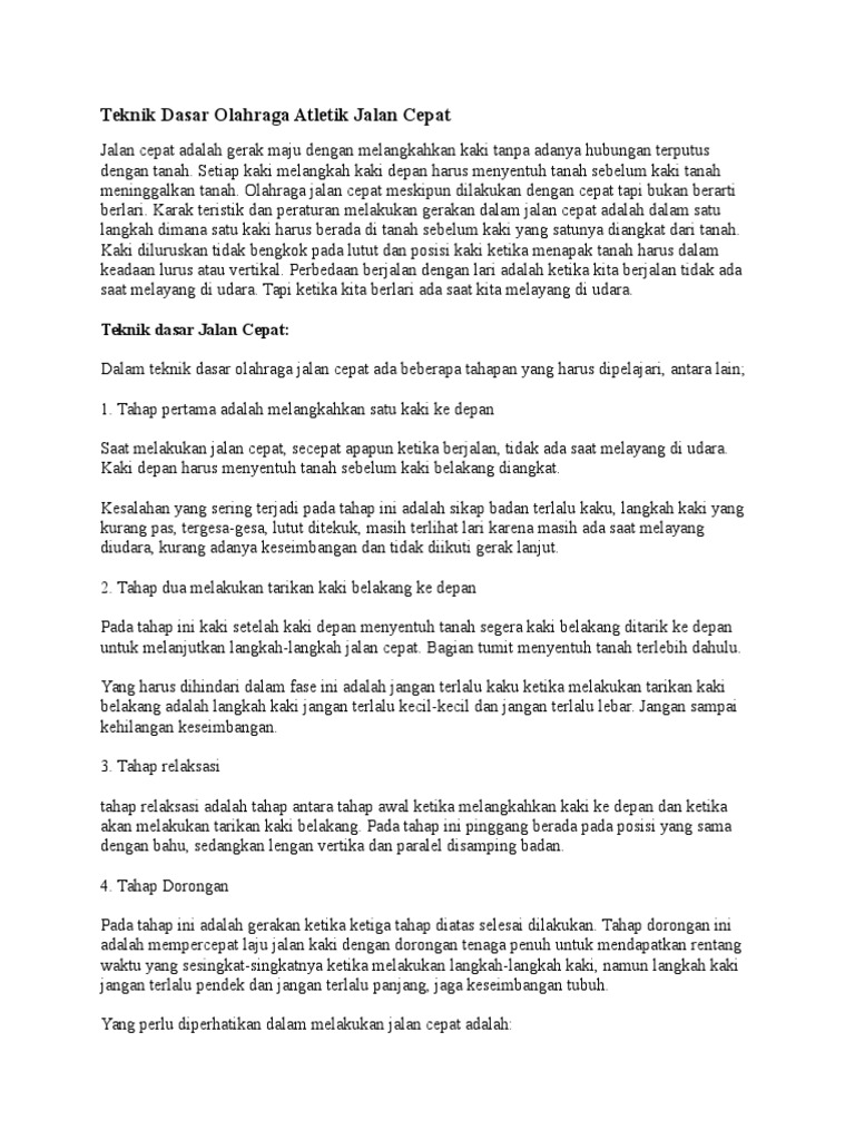 Teknik Jalan Cepat - Kumpulan Olahraga