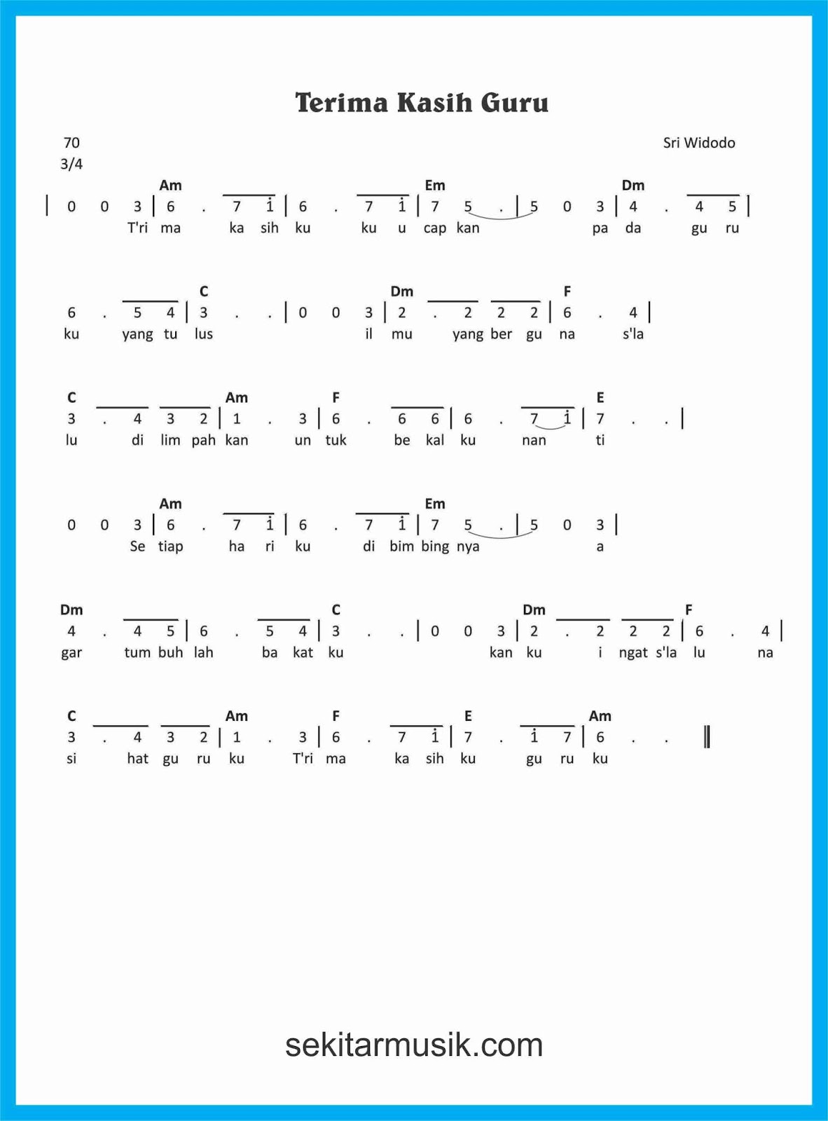 Not Angka Lagu Terima Kasih Guruku - SEKITAR MUSIK