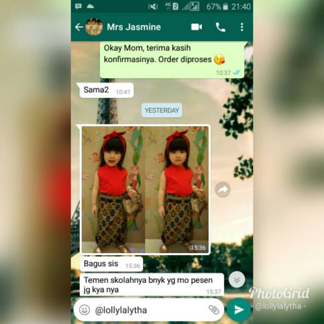 Chat konfirmasi di WhatsApp menyatakan bahwa barang telah diterima olen pembeli. | Pengikut