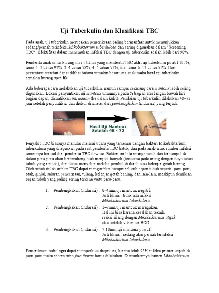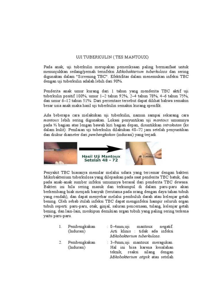 Pemeriksaan Mantoux test (tuberculin skin test) — Online Text Book ATLM