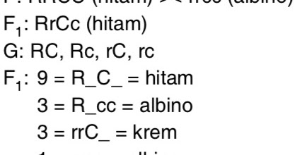Pada tikus warna rambut hitam dikendalikan oleh gen R dan C bersama-sama, sedangkan rr - Mas Dayat