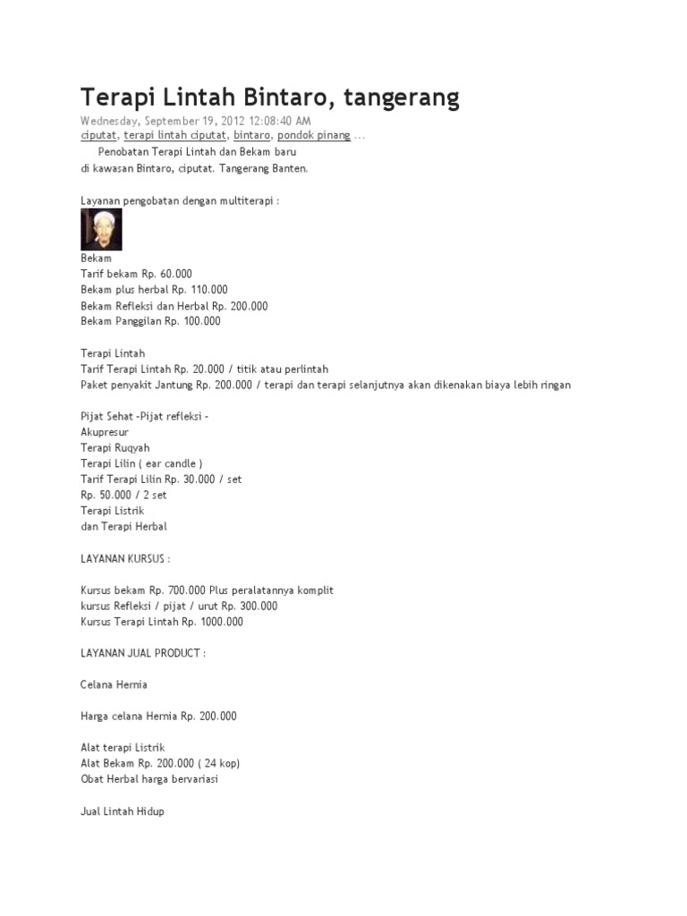 Biaya Terapi di Klinik Assyarif - Klinik Bekam Asy-Syarif dan Herbal Holistik