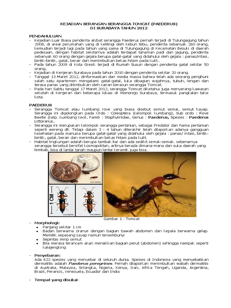 Kejadian Serangan Serangga Tomcat (Paederus) Di Surabaya Tahun 2012 Pendahuluan