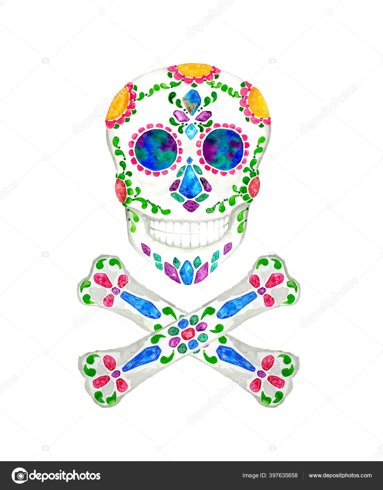 Tengkorak Dan Tulang Dengan Perhiasan Yang Dihias Untuk Hari Kematian — Stok Foto © aimful #397635658