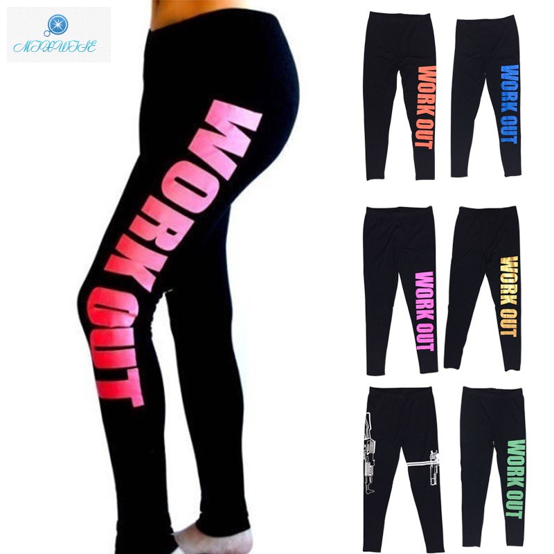 Celana Legging Wanita Model Pinggang Elastis dengan Gambar Tulisan untuk Yoga / Fitness / Olahraga | Shopee Indonesia
