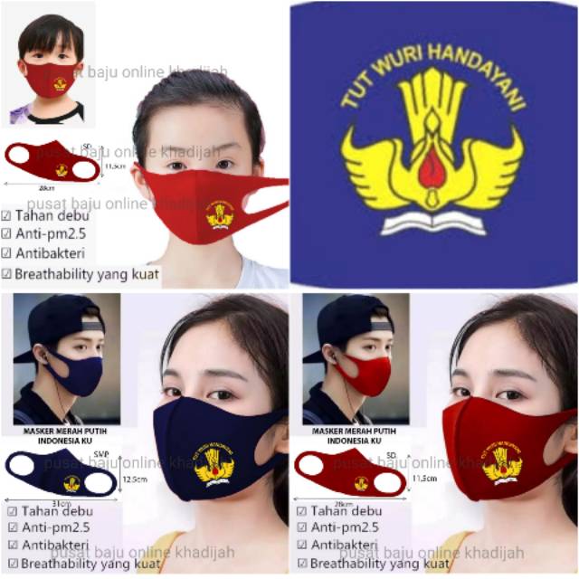 Masker Anak Sekolah SD-SMP-SMA (Tut Wuri Handayani) Bahan Scuba | Shopee Indonesia