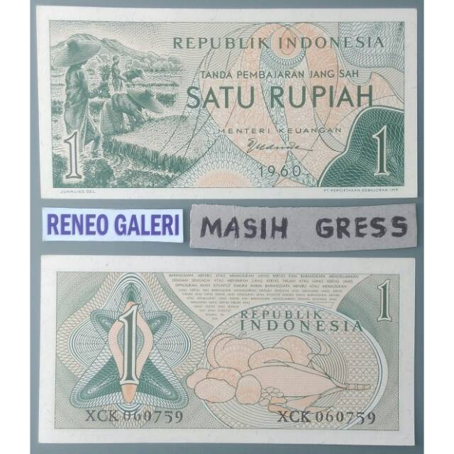 Gress Mulus Rp 1 rupiah tahun 1960,1961 seri sandang pangan uang kertas duit kuno jadul lawas lama | Shopee Indonesia