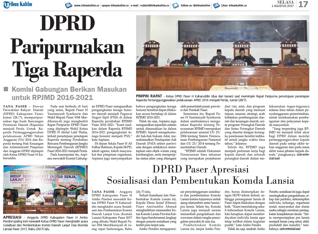Paser New Update: DPRD Paripurnakan 3 Raperda