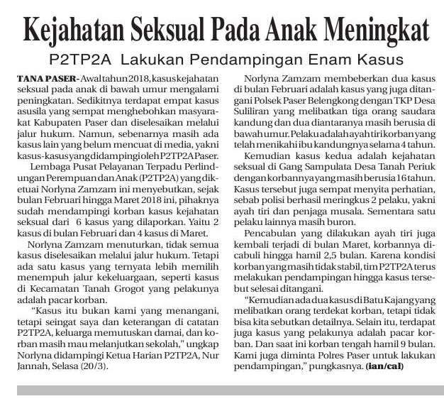 Paser New Update: Kejahatan Seksual Pada Anak Meningkat