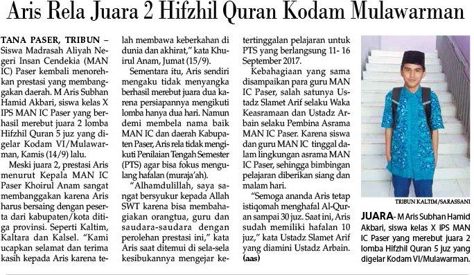 Paser New Update: Aris Rela Juara 2 Hifzhif Quran Kodam Mulawarman