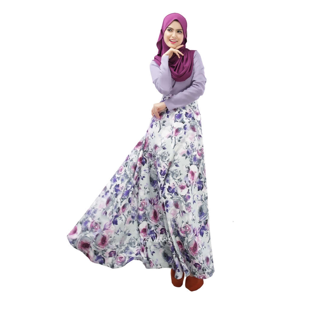 Gaun Wanita dengan Model Split dan Gambar Motif Bunga Bergaya Arab untuk Muslim 025 | Shopee Indonesia