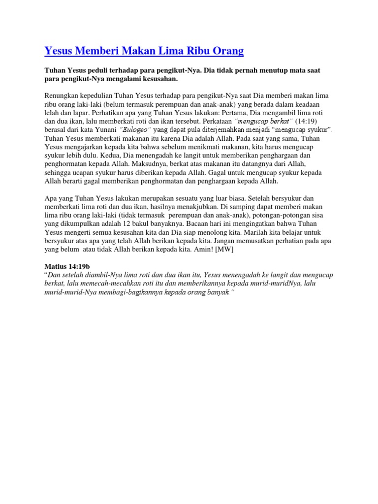 Renungan Yesus Memberi Makan Lima Ribu Orang - winapambudi