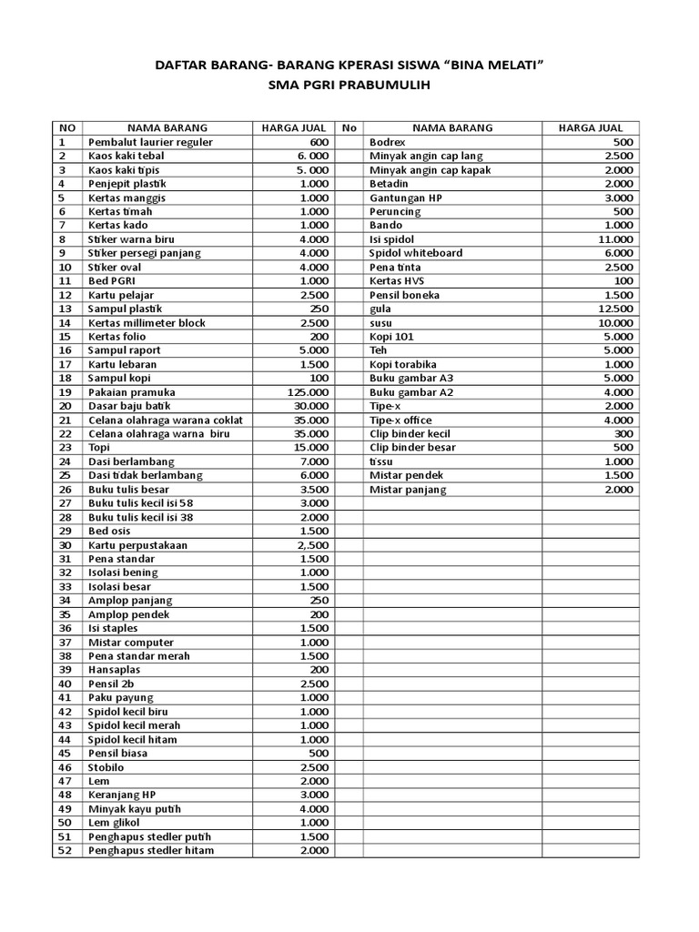 DAFTAR BARANG KOPSIS