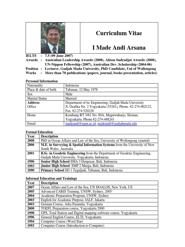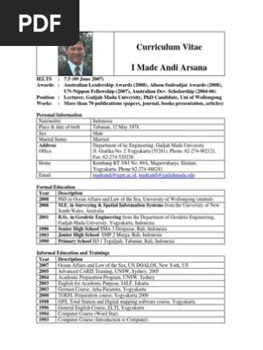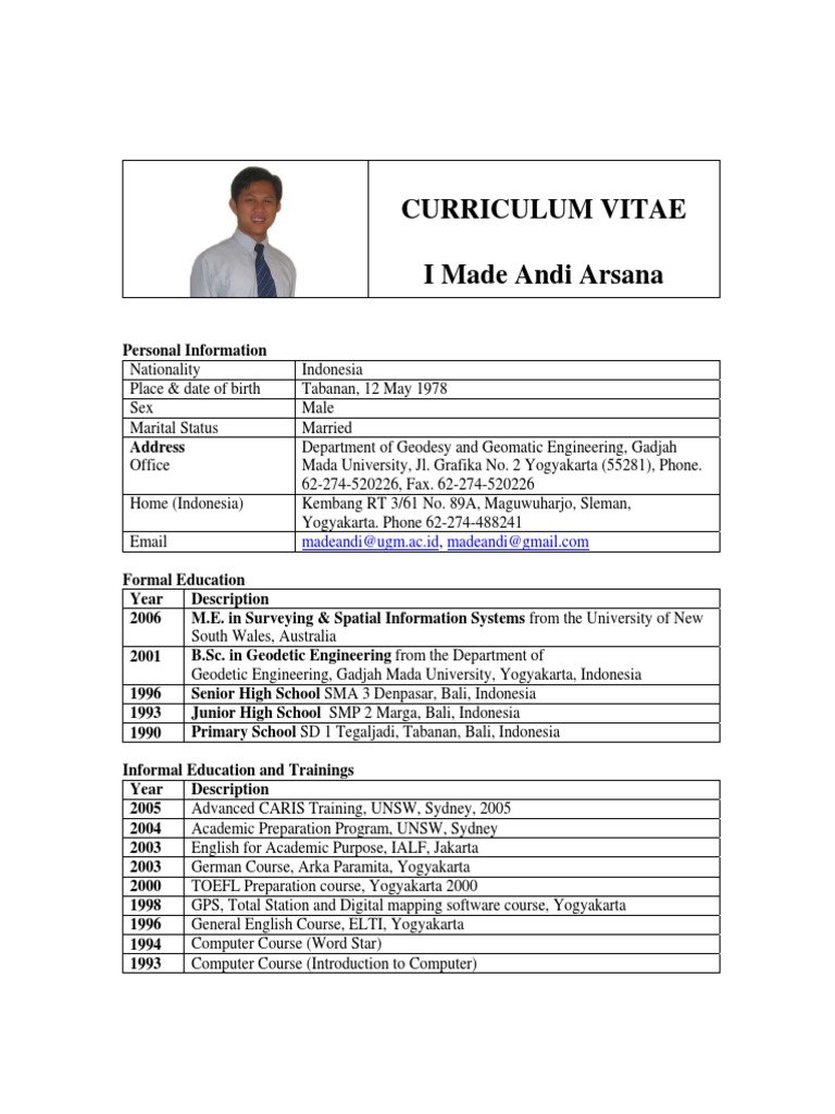 Example of Cv Arsana May07 | Indonesia | Geomatics