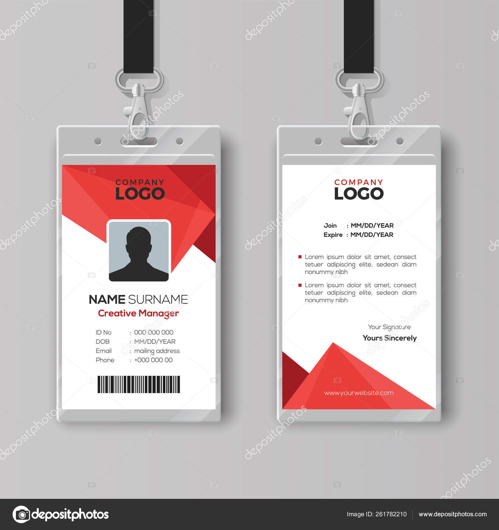 Red Employee Id Card Template - Download Free Vectors, Clipart Graphics & Vector Art