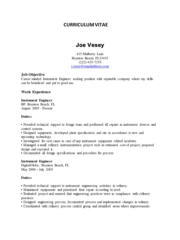 Instrumentation Engineering Resume Sample - How to create an Instrumentation Engineering Resume Sample? Download… | Engineering resume, Resume template word, Resume