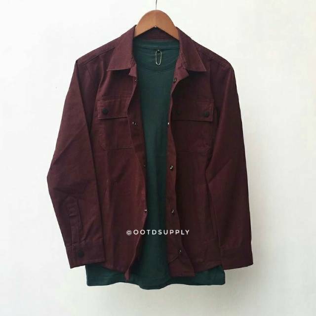 OOTD Trucker Canvas Merah Maroon l jaket canvas l jaket semi parka l jaket casual | Shopee Indonesia