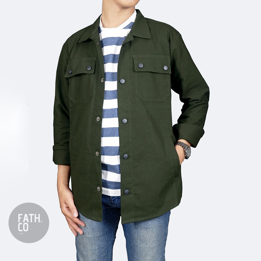 Kemeja / Jaket Trucker Canvas Pria - Hijau Tua | elevenia