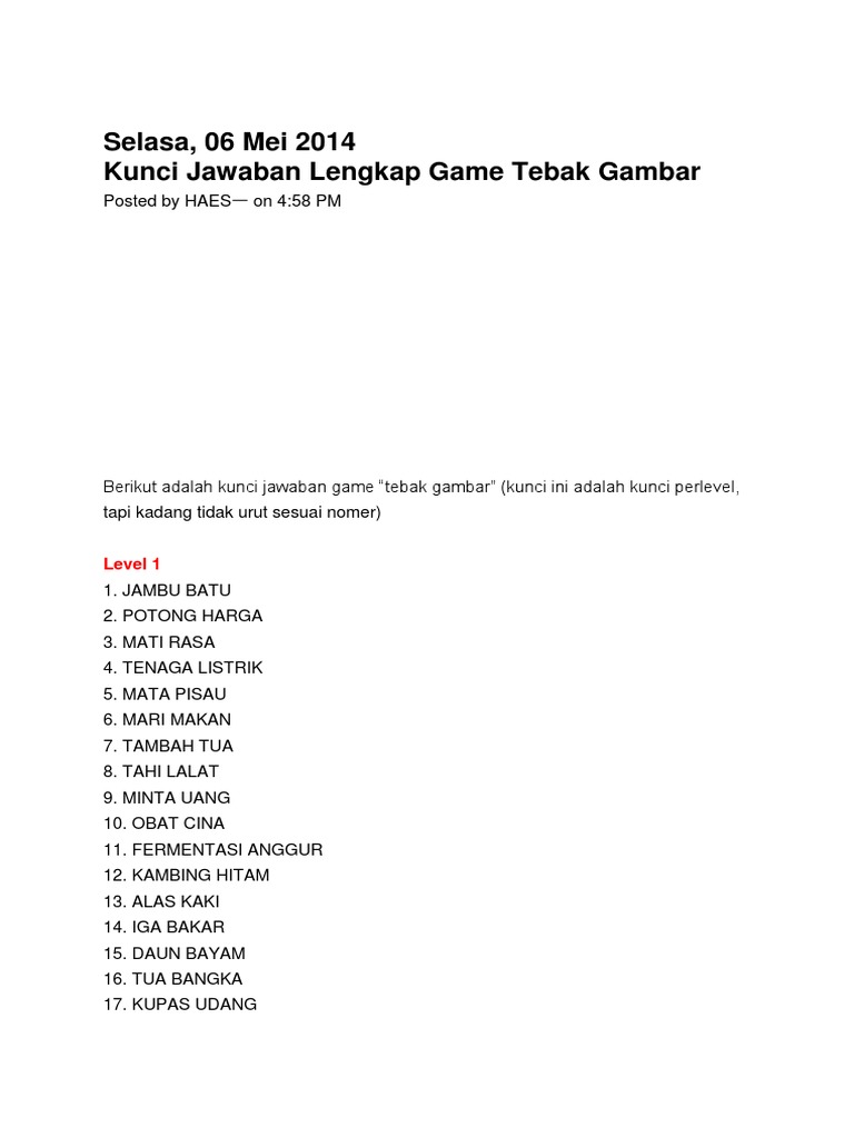 DOC) Kunci jawaban tebak gambar level 9 terbaru.docx | ahmad suryanto - Academia.edu