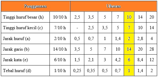 Ukuran Huruf dan Angka Gambar Teknik | Catatan Indah Sebuah Pena