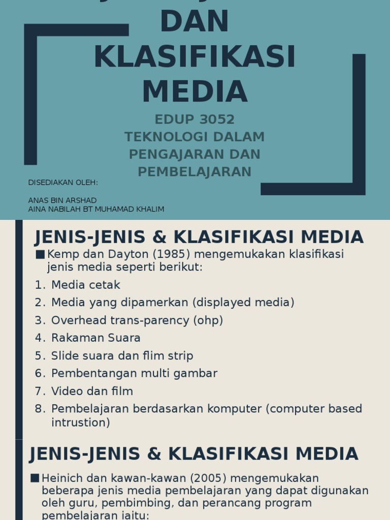 Jenis- jenis dan Klasifikasi Media - HidayahZaidy EDU 3105