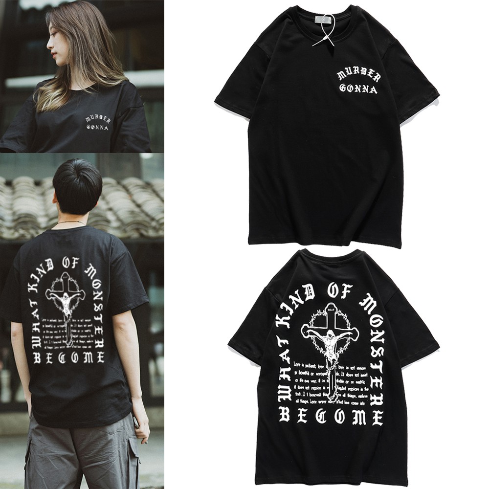 Kaos T-shirt O-neck Lengan Pendek Motif Print Tulisan Jesus+gambar Salib Untuk Pria/wanita | Shopee Indonesia
