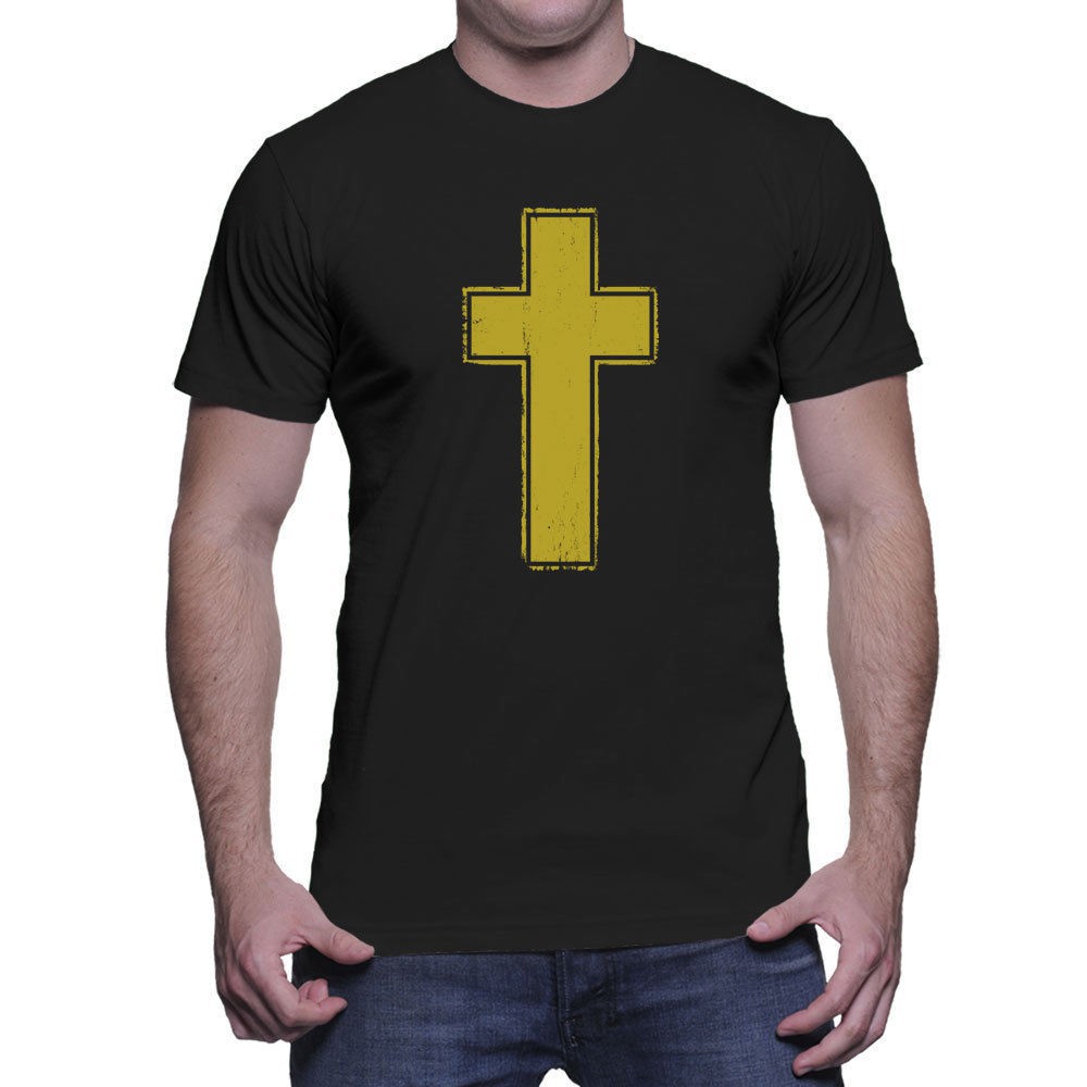 Kaos T-shirt Model Gambar Salib Kristen Warna Emas Hitam | Shopee Indonesia