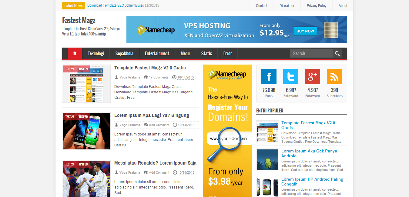 Ndeso Template: Fastest Mag 1.1 Responsive Blogger Template