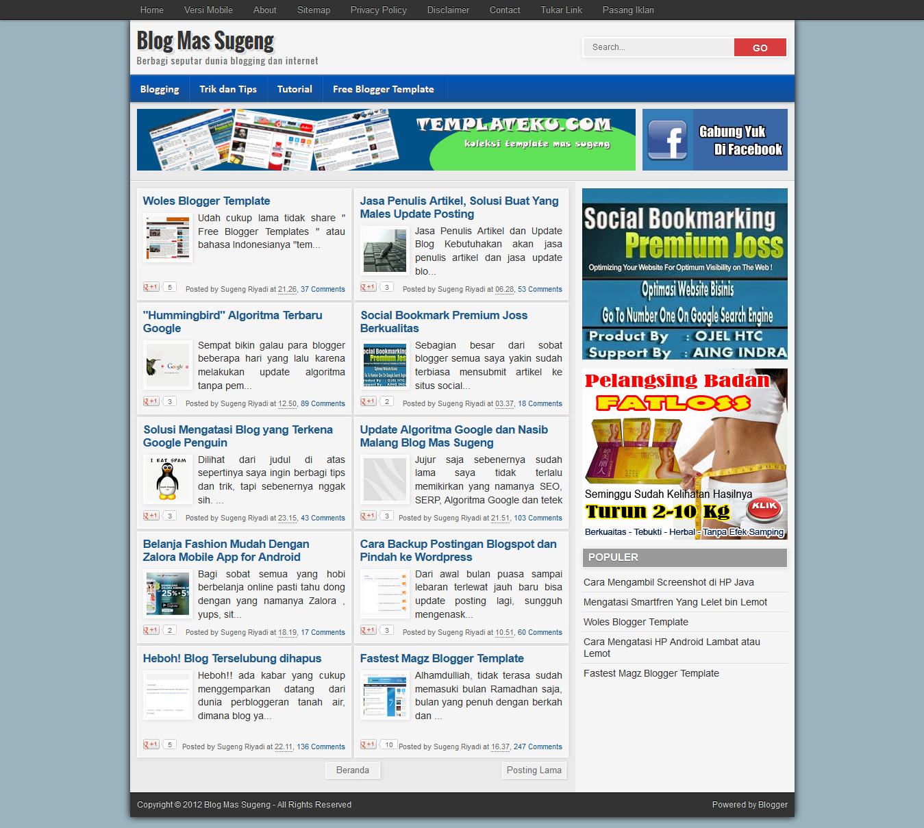 4 Template Blogger Buatan Mas Sugeng Yang Dibagikan Secara Gratis