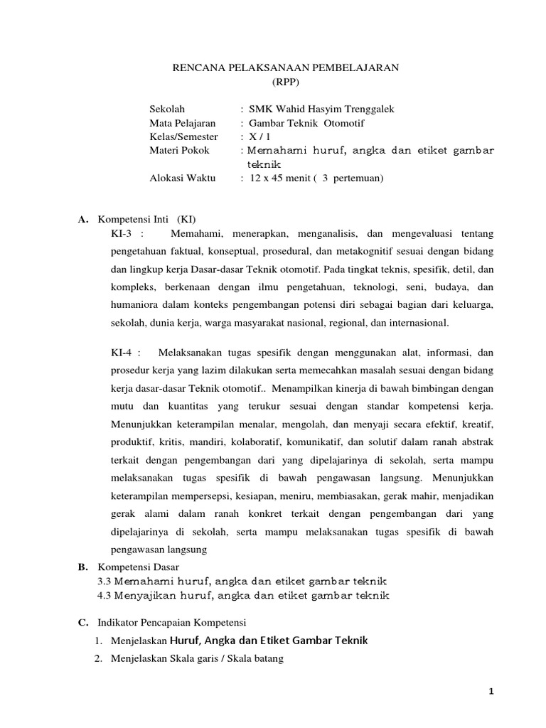 3. Memahami huruf, angka dan etiket gambar teknik (1).doc - KURIKULUM 2013 RENCANA PELAKSANAAN PEMBELAJARAN(RPP Nama Sekolah Kelas Semester X(Sepuluh 1 | Course Hero