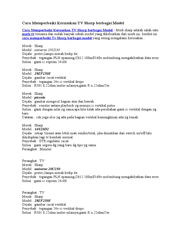 Cara Memperbaiki Tv Sharp Protek Led Merah - Servis Televisi