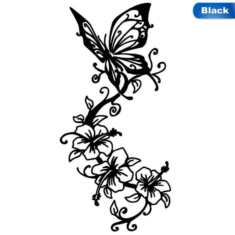 Fashion Stiker Mobil Bunga Kupu kupu Stiker Mobil Dekorasi Bunga Seni Vinyl Decal Hitam/Perak Tabir Surya Tahan Air, 14Cm * 12Cm|Mobil Stiker| - AliExpress