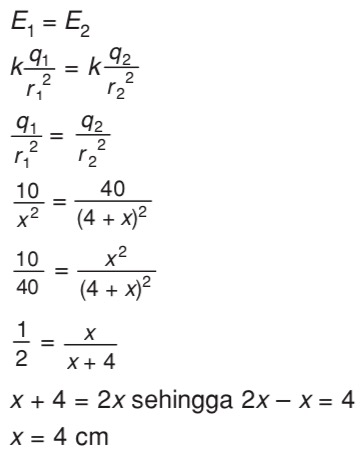 Tiga muatan listrik di susun seperti gambar berikut. Agar muatan uji P bebas dari pengaruh gaya - Mas Dayat