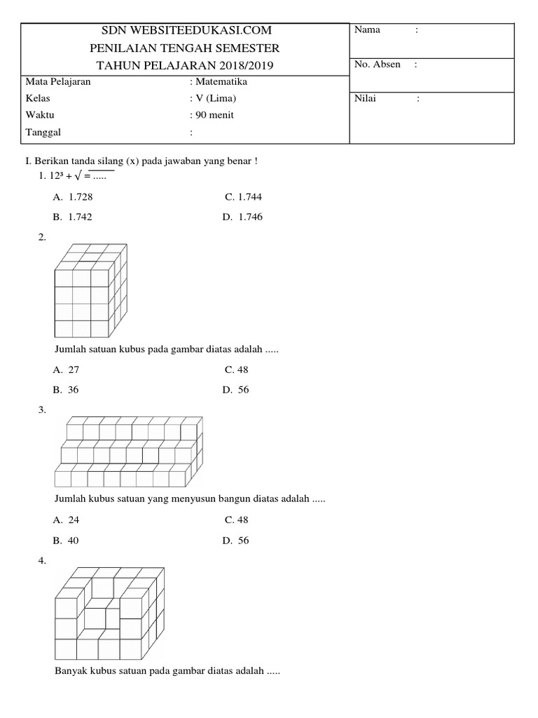 Soal Uji Kompetensi Matematika Semester 2 Kelas VII | Mikirbae.com
