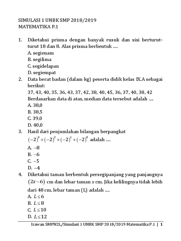 Soal Simulasi Unbk Kedua Tahun 2018