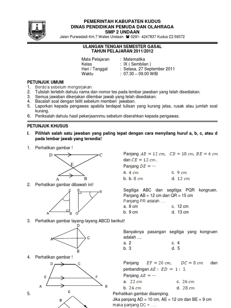 Soal Kesebangunan Dan Kongruensi Kelas IX