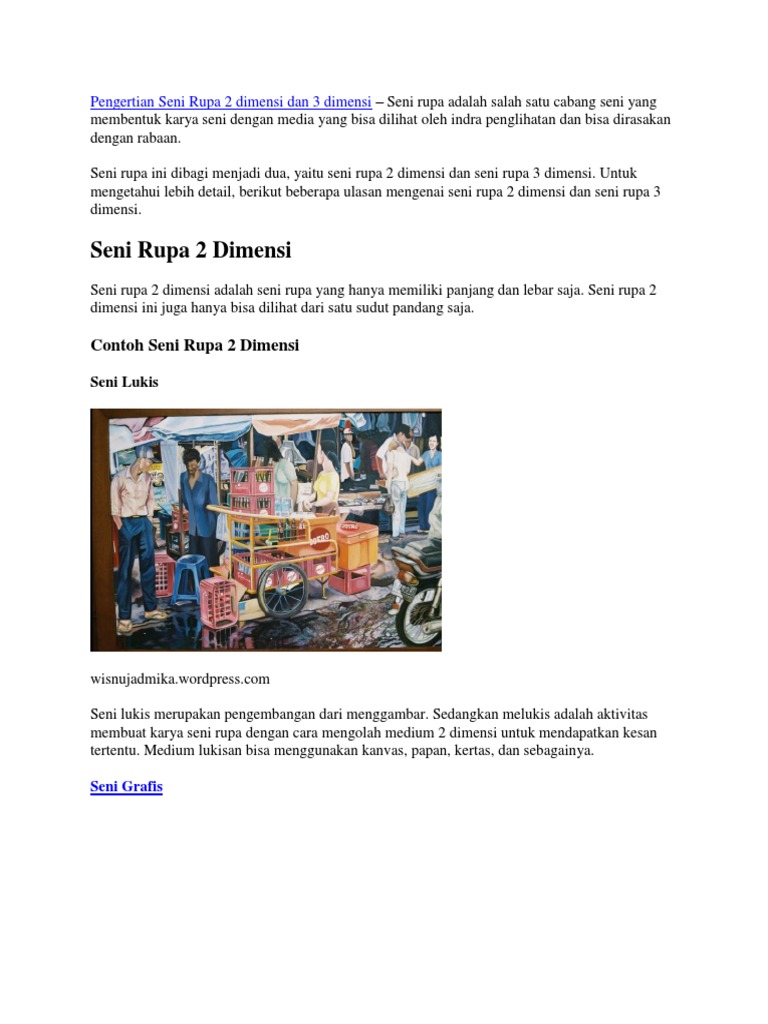 Contoh Seni Rupa 2 Dimensi dan 3 Dimensi - Yuksinau.id