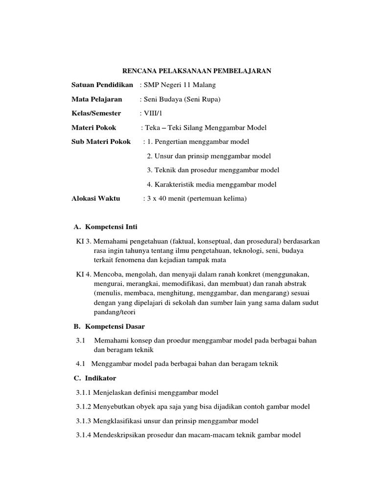 Rpp Kelas Viii Seni Rupa Kd 1 Kelompok Seni Rupa