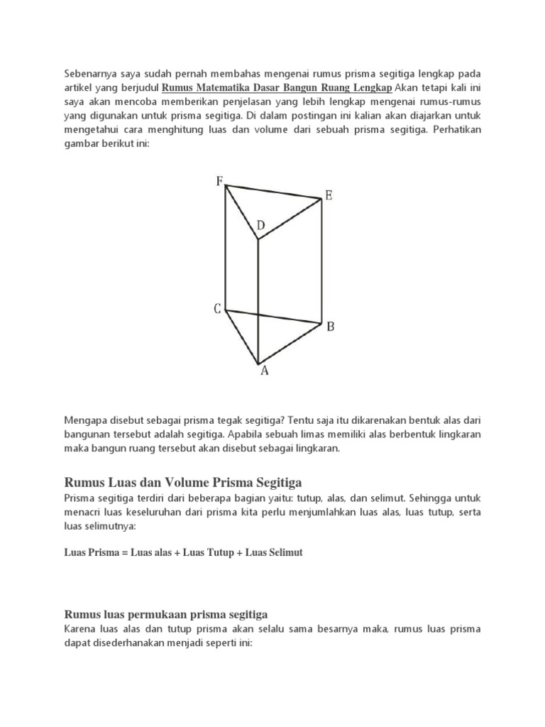 Menemukan Rumus Volume/Isi Prisma Tegak Segitiga Halaman all - Kompasiana.com
