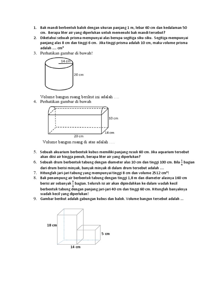 Soal Latihan Volume Bangun Ruang Kelas 6 Sd - Guru Ilmu Sosial