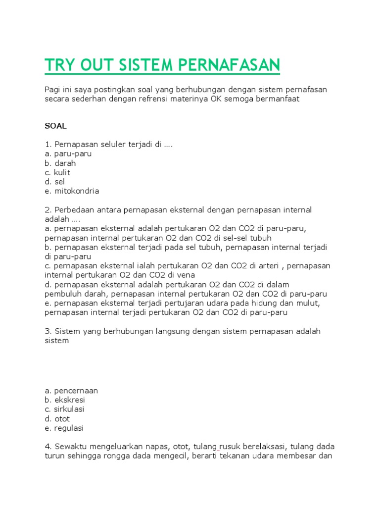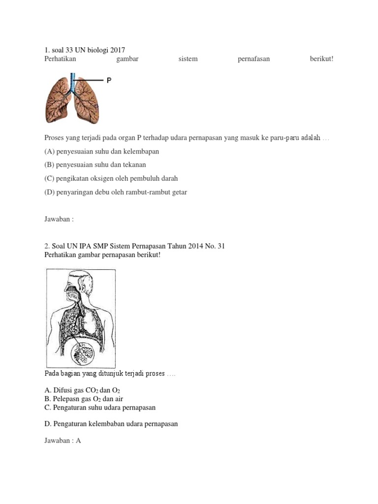 DOC) Soal Biologi Pernapasan 2 | Fahmi Amri - Academia.edu