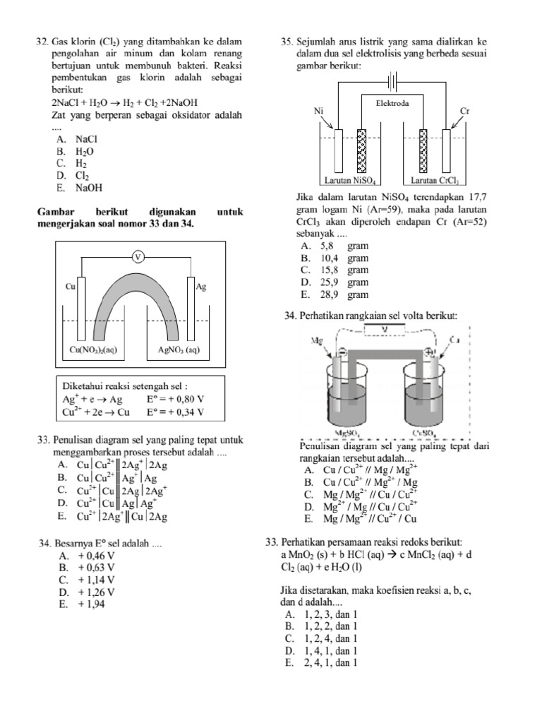 Soal Latihan Skl 7, Redoks, Elektrokimia