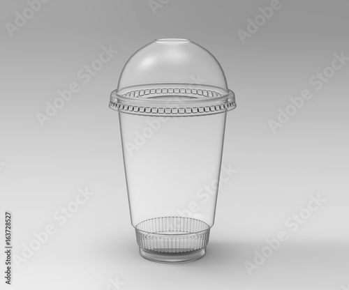 Blank Empty Disposable Plastic Milkshake Cup With Lid. Transparent. Container For Cold, Hot Drink. Juice Fresh, Coffee, Tea. 3d render Illustration Mock Up Template Ready For Your Design. - Buy this stock
