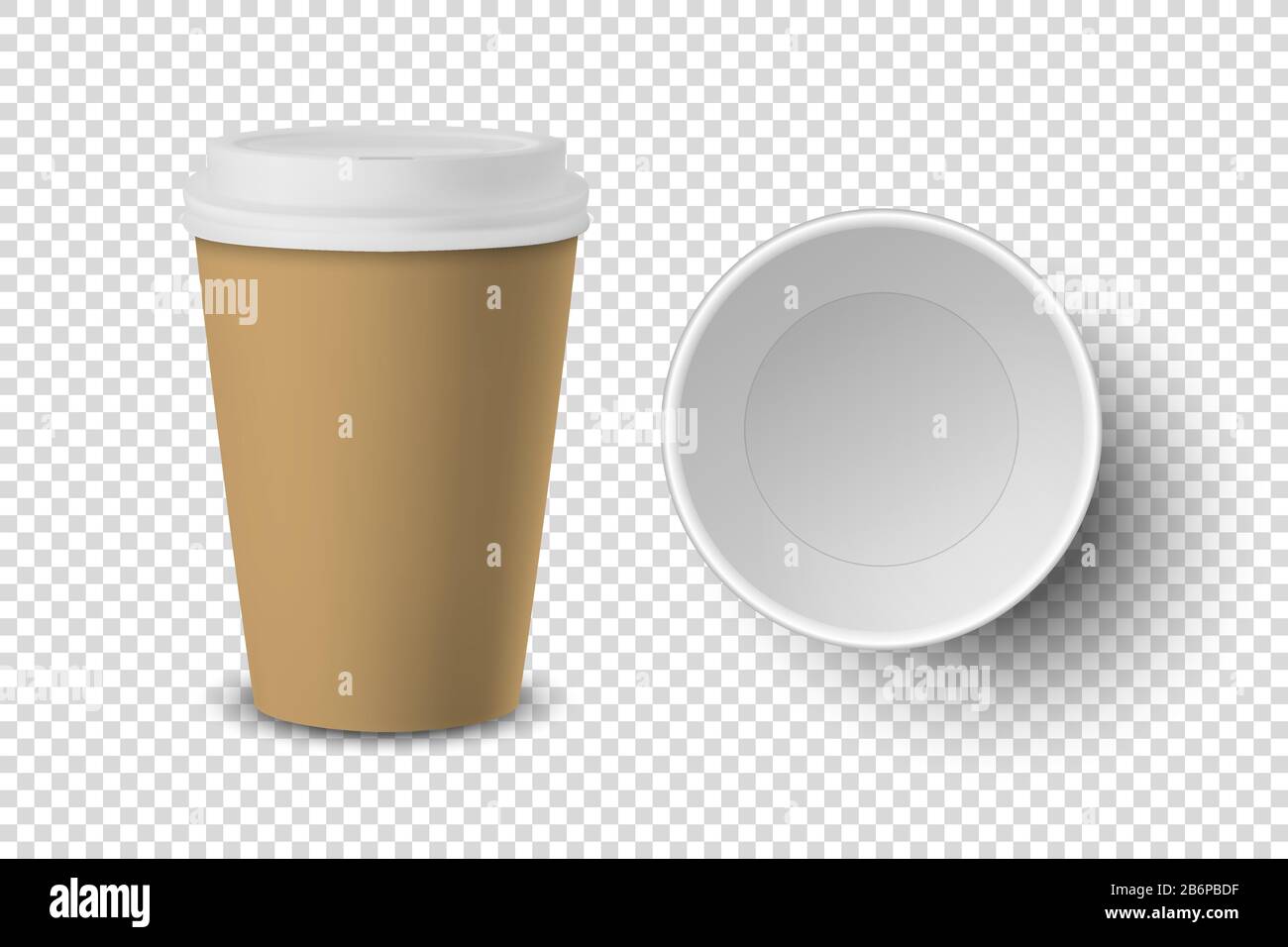 Vector 3d Realistic Empty Brown Disposable Closed and Opened Paper, Plastic Coffee Cup for Drinks with White Lid Set Closeup Isolated. Design Template Stock Vector Image & Art - Alamy