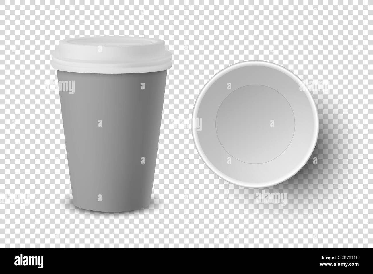 Vector 3d Realistic Empty Gray Disposable Closed and Opened Paper, Plastic Coffee Cup for Drinks with White Lid Set Closeup Isolated. Design Template Stock Vector Image & Art - Alamy