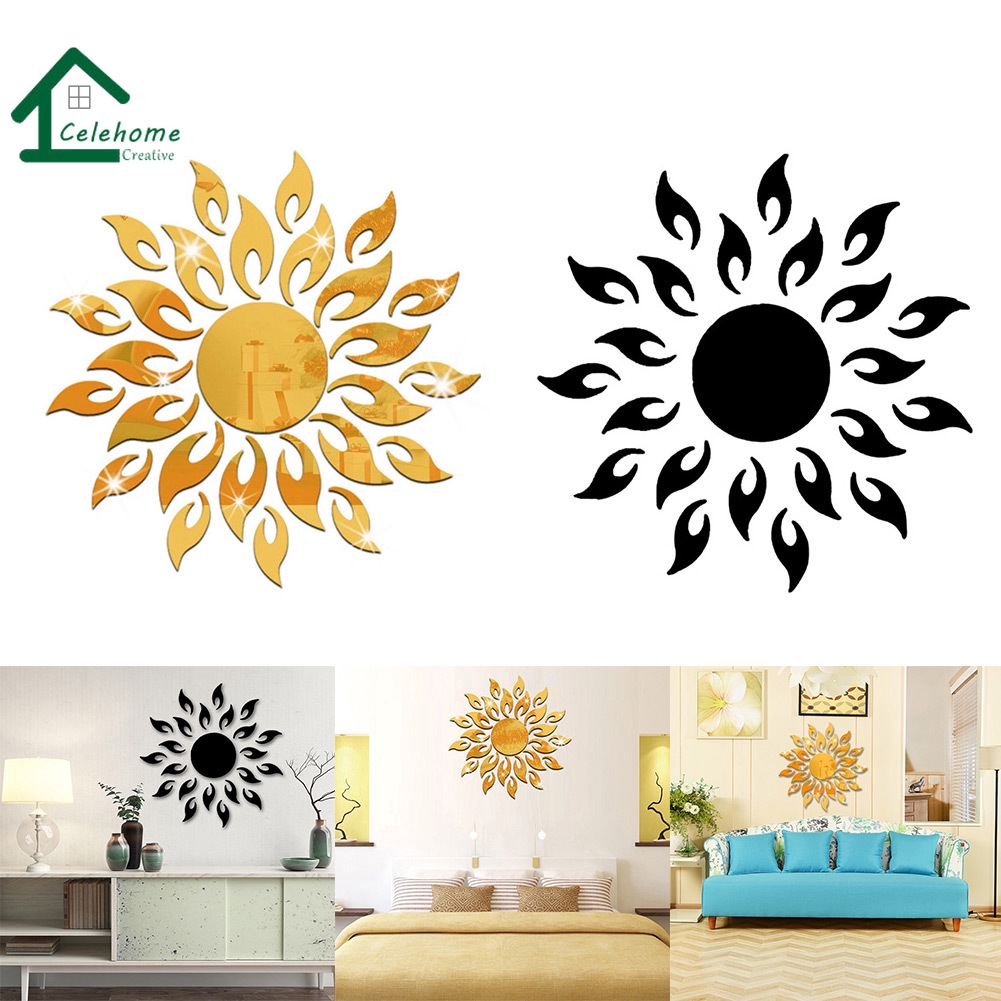 Stiker Dinding Model Cermin dengan Bahan Akrilik Mudah Dilepas dan Gambar Matahari 3D | Shopee Indonesia
