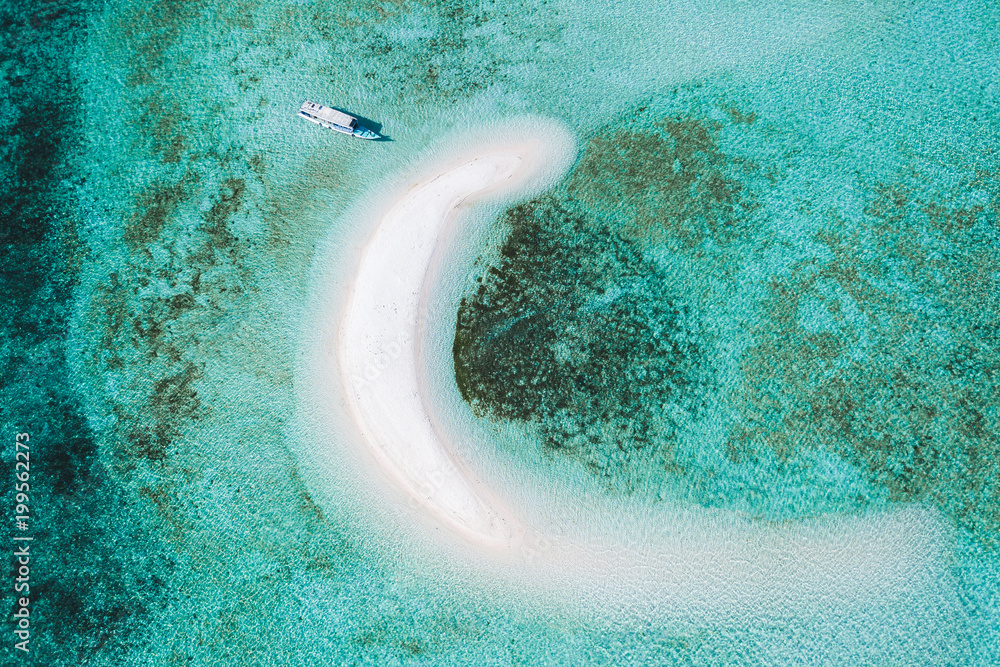 Poster Aerial view of Taka Makassar island in Komodo national park, Indonesia. Empty paradise small white sand island - Nikkel Art
