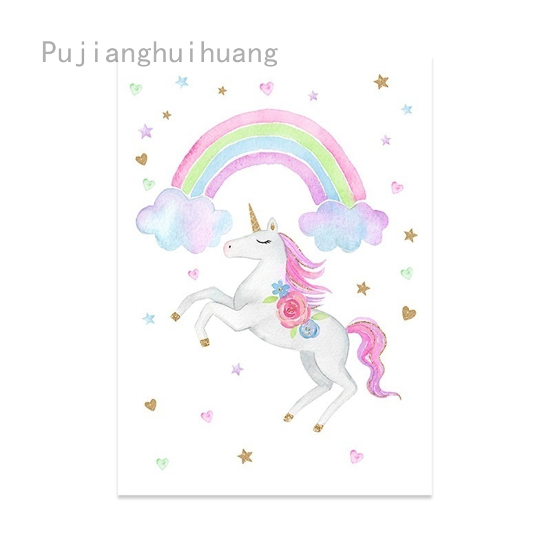 Lukisan Dinding Bahan Kanvas Gambar Unicorn Warna Pelangi Untuk Dekorasi Kamar Anak | Shopee Indonesia